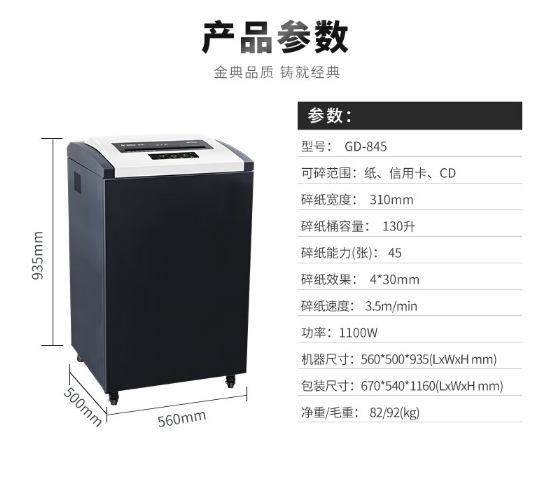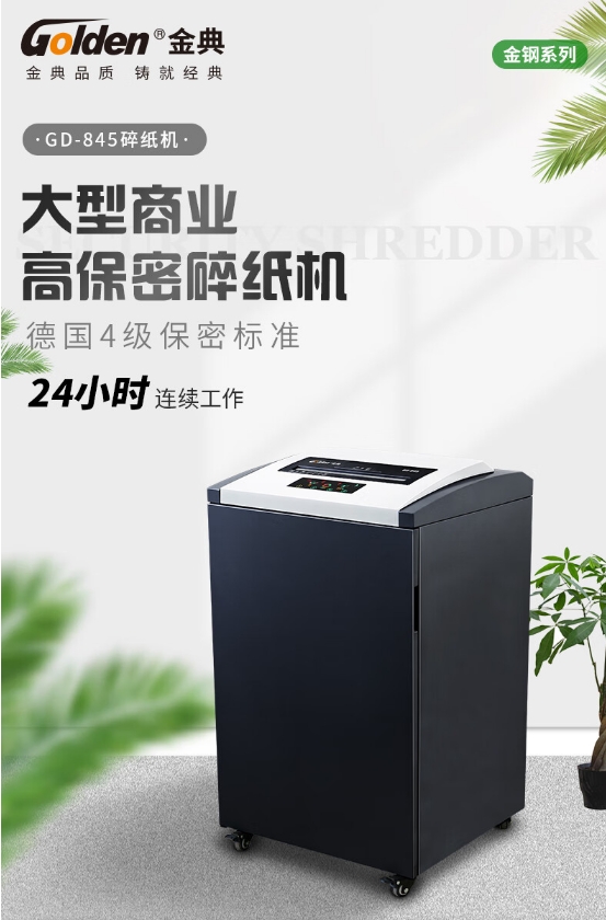 商品名稱:金典(GOLDEN) GD-845 碎紙機(jī) 4級保密連碎24小時(shí)單次45張130L可碎紙卡光盤CD