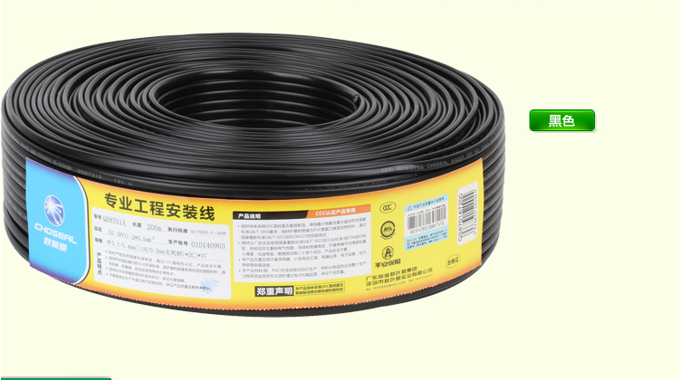 商品名稱(chēng):秋葉原(CHOSEAL)電源線RVV2*1.0純銅電線電纜 黑色 200米