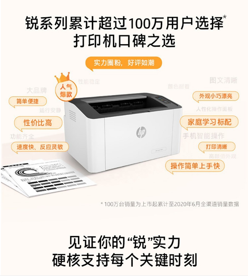 商品名稱:惠普(HP)108w A4黑白打印機(jī) 小型無(wú)線激光單打印