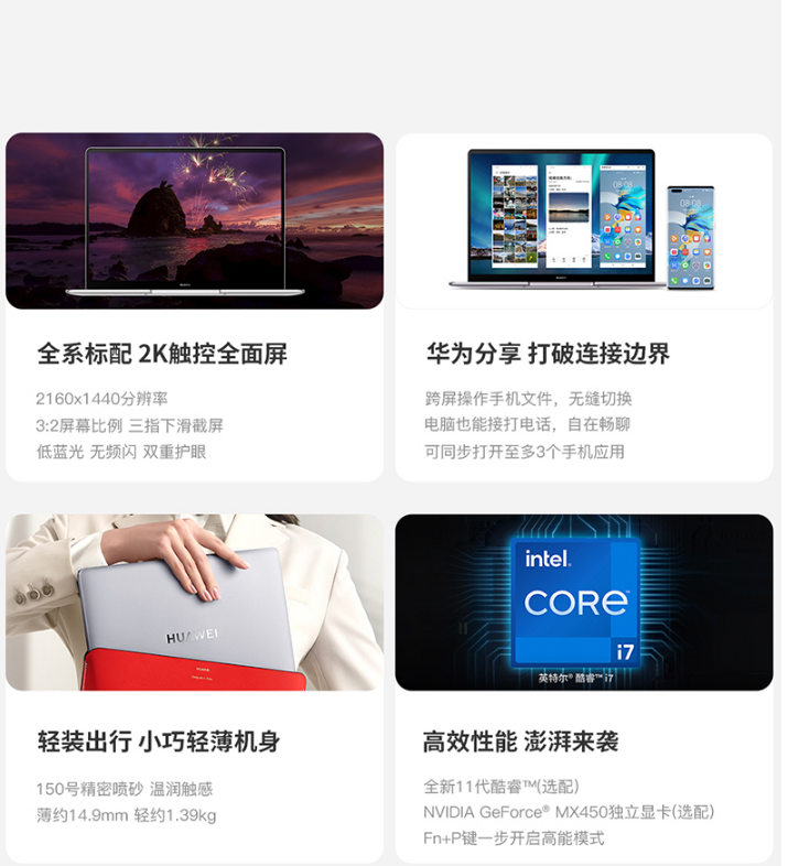 商品名稱:華為(HUAWEI)便攜式計(jì)算機(jī)MateBook13 超輕薄13英寸筆記本電腦I7-1165G7/16G/512G/MX450獨(dú)立顯卡商務(wù)性能筆記本電腦2K全面屏 銀色觸屏